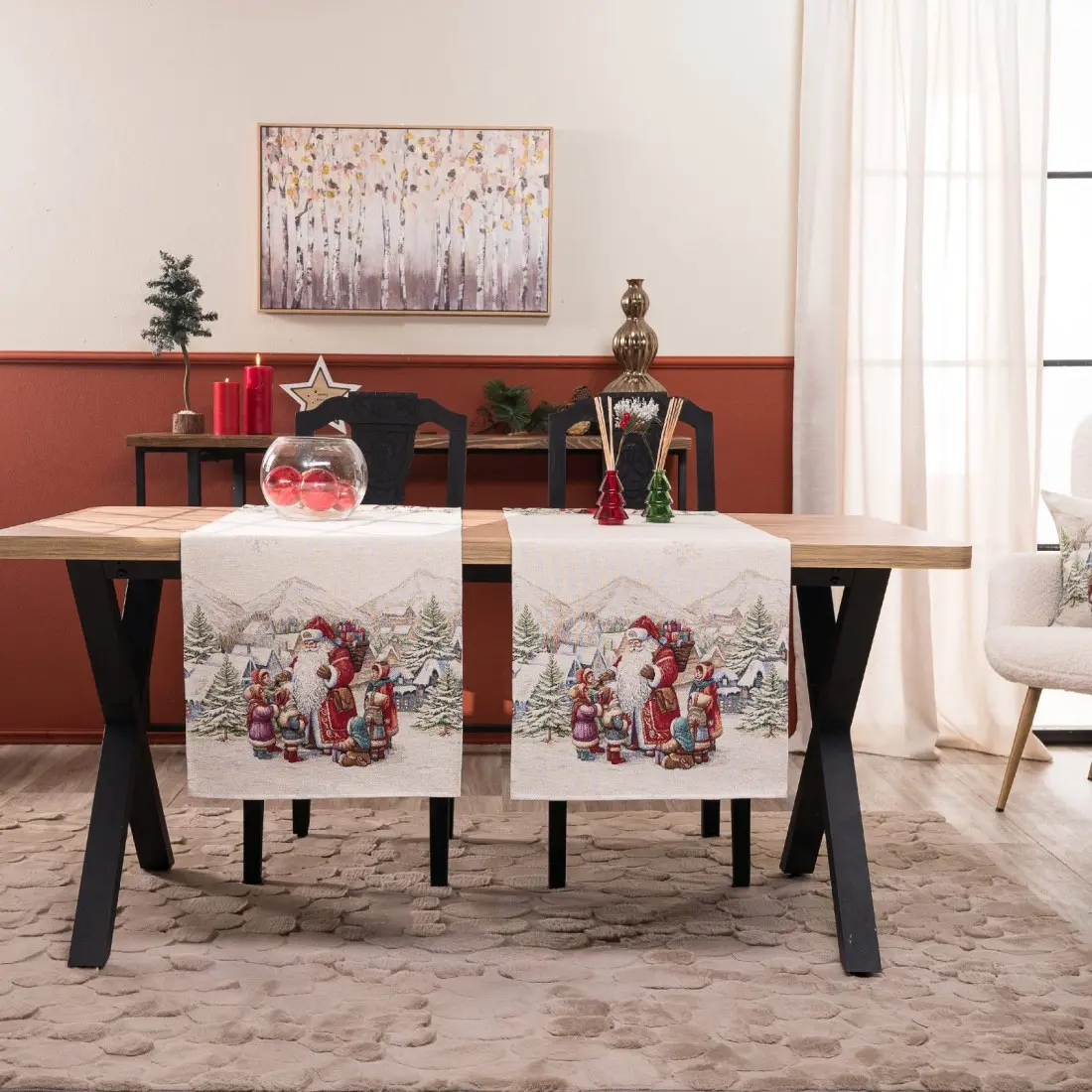 Φέτος τα Χριστούγεννα θα φέρετε τις Άλπεις στο σπίτι σας. Τα ωραιότερα χριστουγεννιάτικα σχέδια θα διακοσμήσουν το σαλόνι σας, την τραπεζαρία σας και την κουζίνα σας. Ζωηρά μα και παστέλ χρώματα θα σας ξετρελάνουν μετατρέποντας το σπίτι σας στο πιο glamour και cozy σκηνικό. Πλένονται στους 30 βαθμούς και σε χαμηλές στροφές.