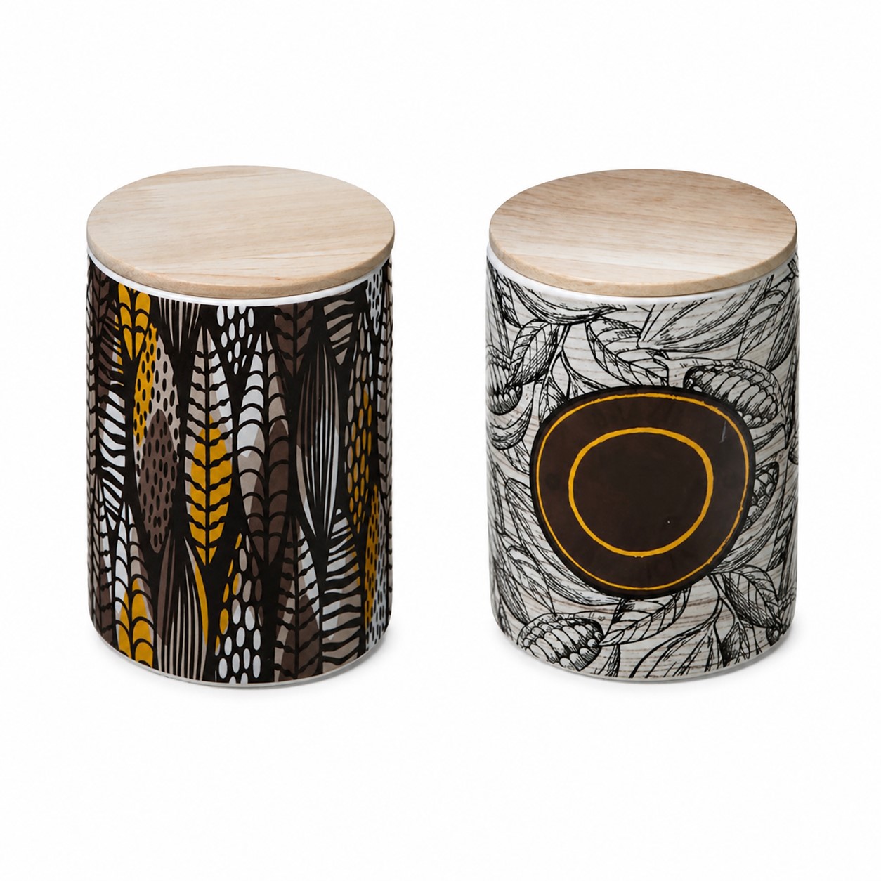 Σετ 2 Κεραμικά Δοχεία Αποθήκευσης με Ξύλινο Καπάκι της 5five